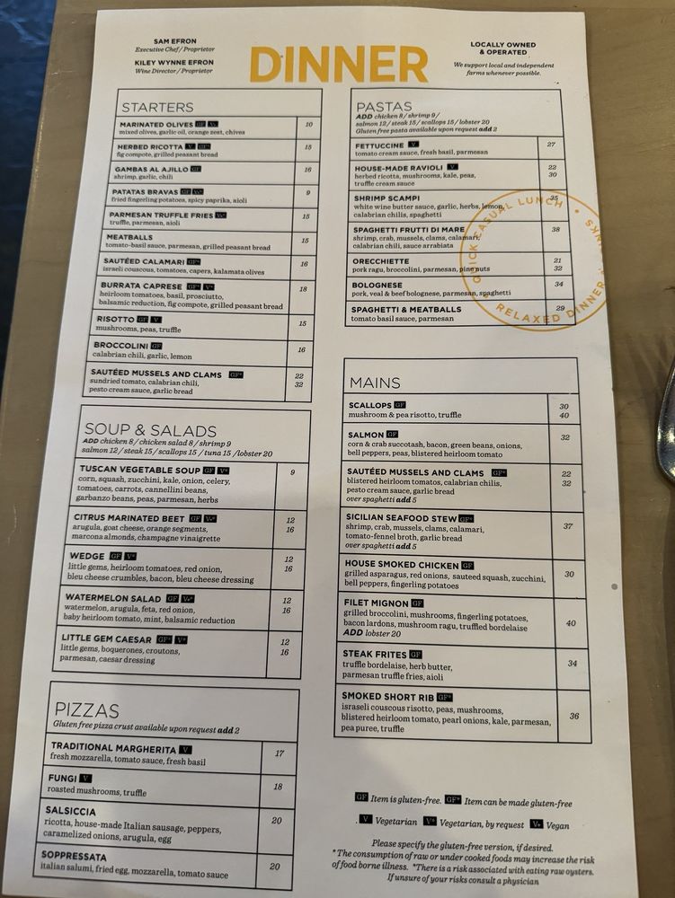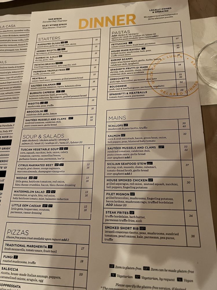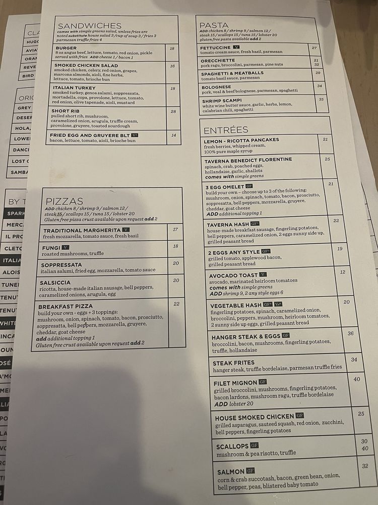 TAVERNA is a trendy Italian wine bar located in Jacksonville, FL, offering a variety of vegan and vegetarian options. The menu features delicious starters like Prosciutto Scone and Banana Bread, along with sides such as Lemon Ricotta Pancakes and Patatas Bravas. One of the standout dishes is the Taverna Benedict Florentine, a flavorful combination of spinach, crab, poached eggs, and hollandaise sauce. Customers rave about the ambiance and friendly service, making it a popular spot for brunch. The espresso Martinis and seafood options receive high praise from patrons, showcasing the quality and attention to detail in each dish. With a diverse menu and great atmosphere, TAVERNA is a must-visit for those looking for a memorable dining experience.